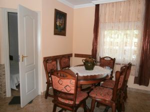 - a ház alsó szintjén lévő szálláshely (90 m2 ) kialakítása: 2 szoba + 1 nappali + 1 konyha (hűtő fagyasztó résszel, 1 gáztűzhely, kávé- és teafőző) + 1 fürdőszoba zuhanyzóval WC-vel + 1 WC, max 4-6 fő